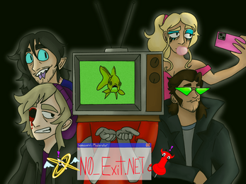 No_Exit.NET is a short, sweet Visual Novel created for Jamsepticeye, inspired by the prompt “Death is an opportunity”. It's a funny and fast paced adventure navigating an early 2000s chatroom and making new connections.